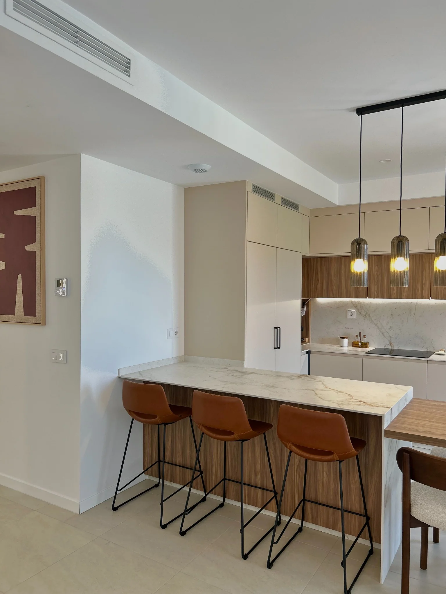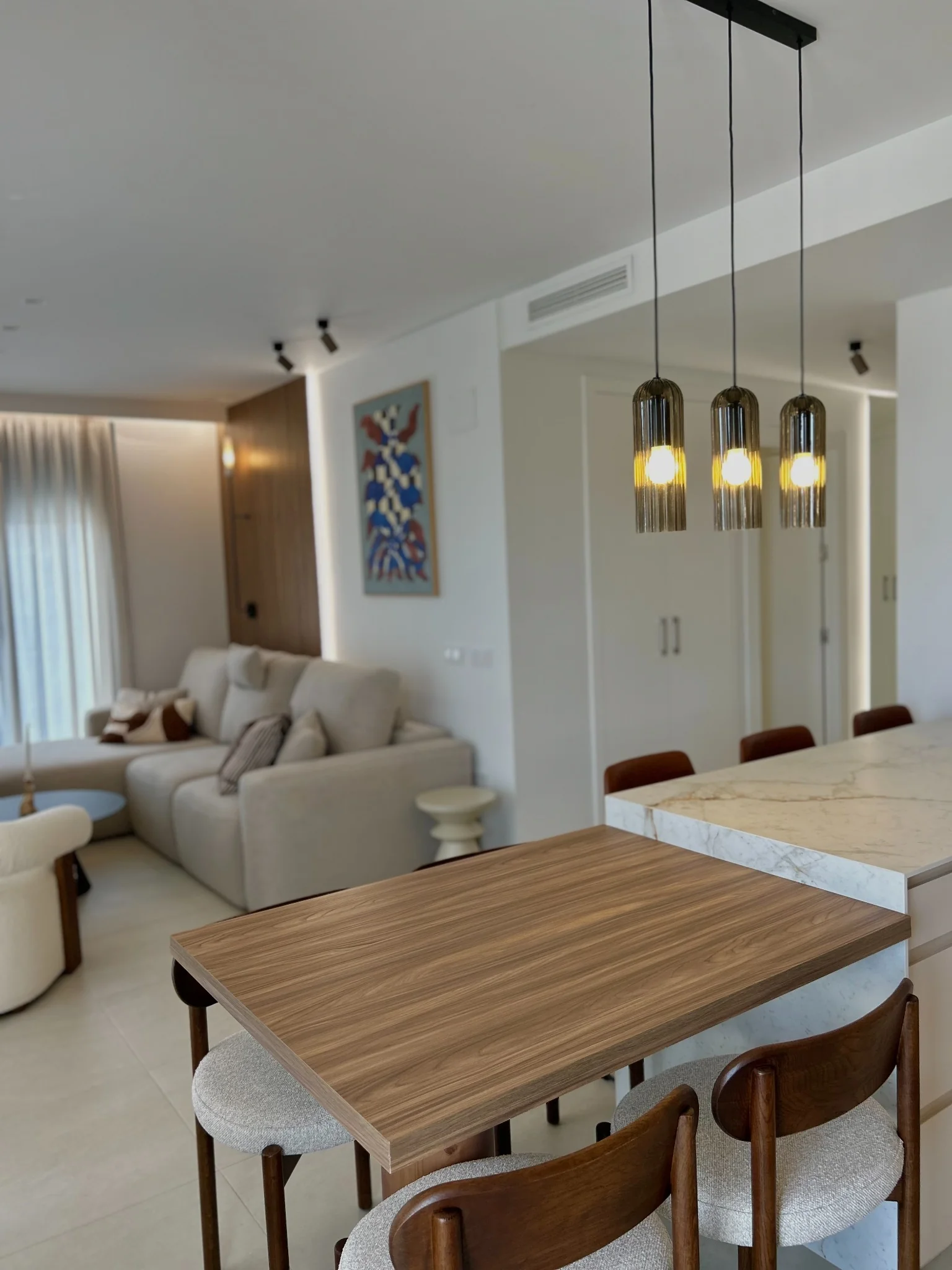 Jugamos con la iluminación en puntos concretos para zonificar los espacios según el cliente quisiera y conseguimos un gran acabado.